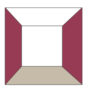 Zoals je op de afbeelding (hieronder) kan zien lijkt het bij het verven van de achterwand alsof deze verder weg is en de ruimte dieper is. Deze optische illusie kan je in je voordeel gebruiken op het moment dat je een ruimte meer diepte wilt geven. Dit kan bijvoorbeeld handig zijn bij het groter laten lijken van een slaapkamer die breed is, maar niet heel diep.